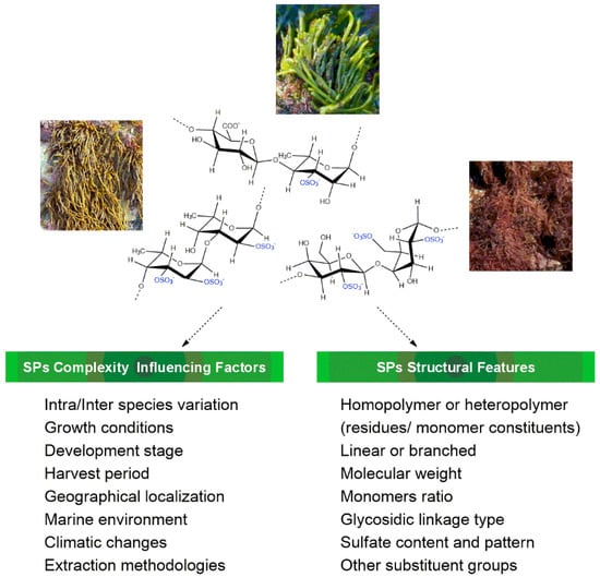 Features related to macroalgae sulfated polysaccharides’ complexity.