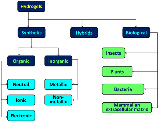 The cross-linking of hydrophilic polymer chains results in the formation of a three-dimensional (3D) network colloidal gel known as hydrogel. The content and origin of hydrogels are two of the primary factors that determine whether they are categorized as biological, synthetic, or hybrid. The mechanical characteristics of biological hydrogels are inferior to those of synthetic hydrogels because biological hydrogels are made up of natural polymers, which are mostly polysaccharides or proteins. Hybrid hydrogels, on the other hand, can be improved by incorporating the former into synthetic hydrogels. Figure 8 provides further information. The cross-linking of the polymer chains prevents the entire system from becoming soluble, despite the strong attraction of the polymer chains for water. Various cross-linking procedures make it feasible to make further adjustments to the structure and characteristics, which in turn makes it possible to develop hydrogels with very particular functionalities. Therefore, hydrogels may also be classified according to the sort of cross-linking that occurs. In most cases, the production of hydrogels that are physically cross-linked takes place either through the formation of noncovalent bonds between polymer chains or by the formation of entanglements within the polymer network. On the other hand, hydrogels that have been chemically cross-linked have a greater mechanical strength. Because hydrogels are so good at retaining water and possessing outstanding mechanical qualities, they have major uses in a variety of fields, including tissue engineering, medication delivery, and the treatment of wastewater, among others. When bulk materials are reduced to the form of nanoscale particles, there is potential for a number of their physical characteristics to undergo significant shifts. Many optical nanomaterials that have the capacity to absorb light and convert it into other forms have emerged as hot subjects in the disciplines of biological imaging, diagnostics, and sensing as a direct result of the growth of chemistry and nanotechnology.