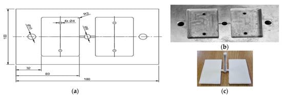 The samples used for texturing were obtained by injection into the mold using the SZ-600H injection machine (Shen Zhou, Zhangjiagang, China). The dimensions of the mold active plate and the cavities are shown in Figure 1.
