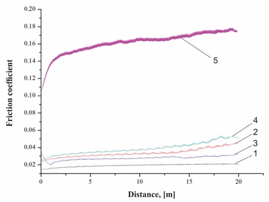 Three measurements were taken for each texture type, and the results were averaged. The friction coefficient values obtained are low and the results are presented in Table 6 and in Figure 4.