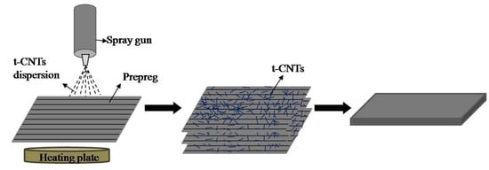 Preparation of CF/CNT/PEEK multiscale composite using spray gun technique (reprinted with permission) [51].