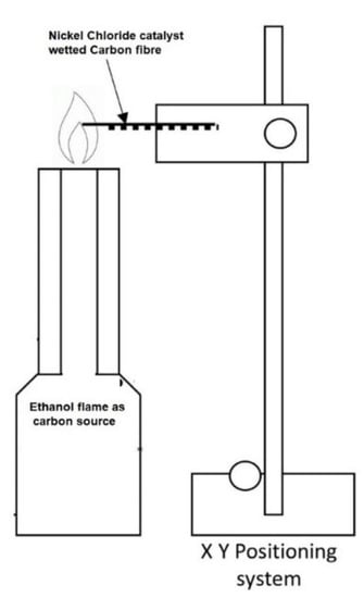 Experimental set-up to grow CNTs on carbon fibres through flame synthesis process (reprinted with permission) [59].
