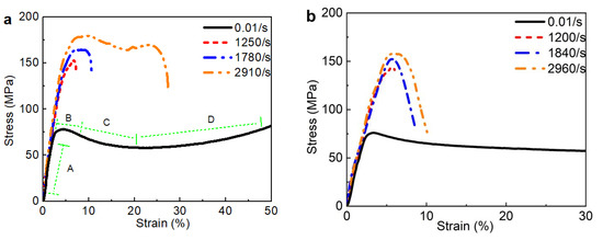 3.3.1. Stress–Strain Curves at Various Strain Rates