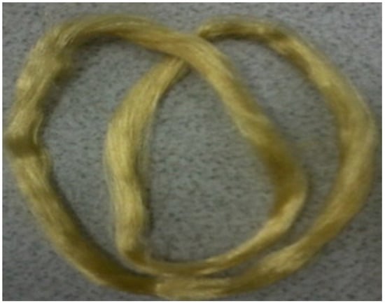 The photograph of the cellulose–chitosan composite fibres made by [152] using a binary ionic liquid system and the dry-wet spinning procedure. Reprinted from Carbohydrate Polymers, 88/1, Ma, Bomou, Zhang, Meng, He, Chunju, Sun, Junfen, New binary ionic liquid system for the preparation of chitosan/cellulose composite fibers, 347–351, Copyright (2012), with permission from Elsevier.