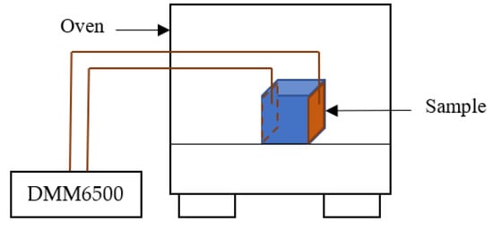 DC electrical measurements were performed on CNT/epoxy samples using Keithley DMM6500 as shown in Figure 2. Before post-curing heating, the initial resistances of the samples were recorded.