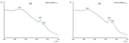 According to the XRD analysis, the IR-PAN-a/PDPAC composites are amorphous irrespective of the preparing method (Figure 3).