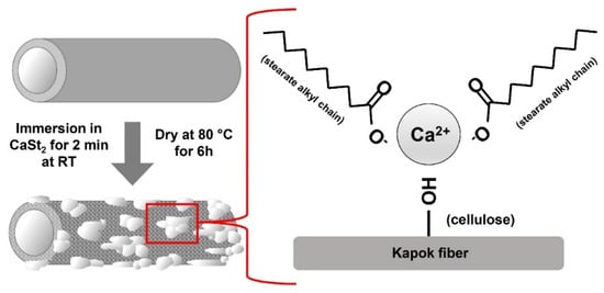 (Color online) Schematic representation of the one-step modification of kapok fibers with calcium stearate.