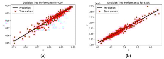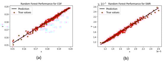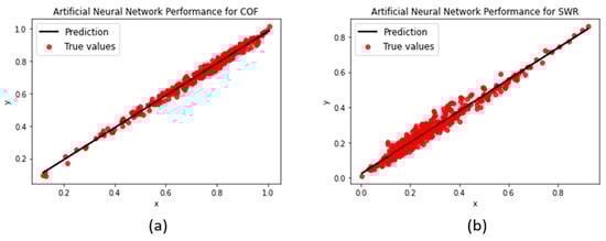 - Coefficient of determination (R2-score): also known as the R-squared value, it is a measure of the correlation between the dependent and independent variables. Ranging from 0 to 1.0 (or 0 to 100%), a higher value is indicative of a better regression fit. The coefficient of determination is calculated, as shown in Equation (3), where is the predicted value of the sample, is the mean of all sample points, and is the true value.