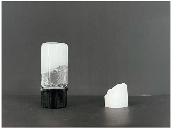 Increasing emulsion viscosity stabilizes oil–water interfaces, which enhances interface initiation at room temperature [1,23]. Emulsion gels were obtained by adding fumed silica particles into emulsions. Chain-like fumed silica particles bridged monomer-dispersed phases in emulsions to form a three-dimensional network, leading to gelation in emulsions or emulsion gels [5,24]. All the emulsions used in this study were in their gel state, as seen in Figure 2. Different monomers did not affect the gel stability with the compositions used in this study. The emulsion gels remained stable without phase separation for weeks in ambient conditions.