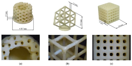 (a–c) Represents different porous 3D-printed structures with formulation C30 with their magnification.