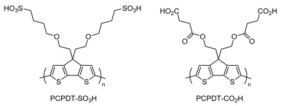 Chemical structure of PCPDT-SO3H and PCPDT-CO2H.