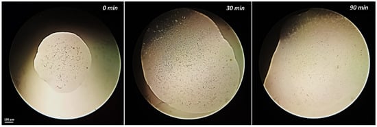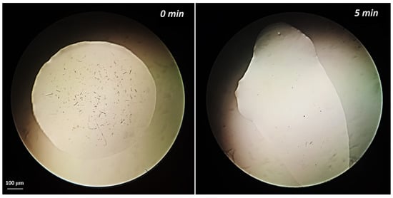 During the experiment, the cellulose fibers split into smaller ones, then visible particles disappeared, and a homogeneous solution was observed (Figure 7).