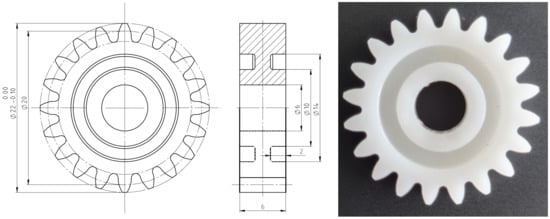 - Trobentar, B.; Kulovec, S.; Hlebanja, G.; Glodež, S. Experimental failure analysis of S-polymer gears. Eng. Fail. Anal. 2020, 111, 104496. [Google Scholar] [CrossRef]