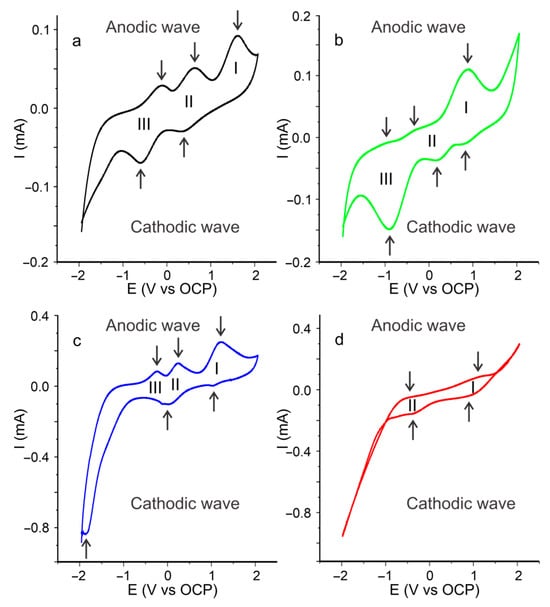| III | Anodic | Ep (V) | −0.19 | −0.87 | −0.22 | −0.66 |