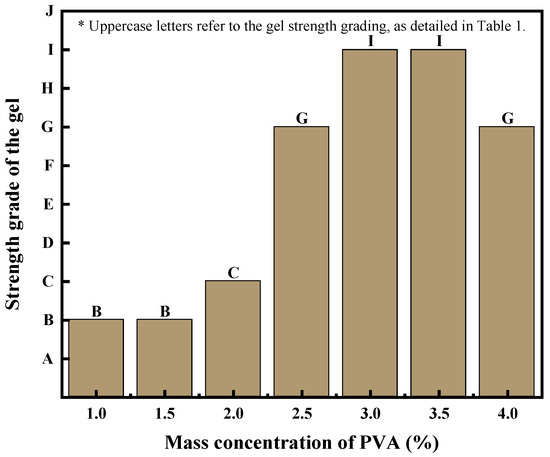 Figure 4 illustrates the experimental results of PVA with different mass concentrations combined with 1% sodium silicate and 0.6% borax. At a mass concentration of 4.0% PVA, the gel displayed local rapid crosslinking, resulting in uneven gel strength.