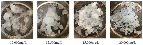 Salt resistance testing. Different salinity saltwater formulations were prepared according to the mass ratio of NaCl:CaCl2:MgCl2·6H2O = 7:0.6:0.4 to evaluate the gel’s salt resistance performance. Take 200 mL of gel, crush it into small pieces, and mix it with saltwater in a 1:1 ratio. Stir the mixture at a speed of 120 r/min for 20 min at room temperature. Then, separate the gel from the saltwater and measure its remaining volume and strength. Repeat the process twice and calculate the average of the results.