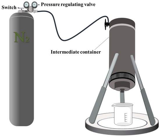 Using a steel-fractured core sample to simulate a crack leak channel, the core sample was 6 cm long with a diameter of 2.5 cm, and it simulated a wedge-shaped crack morphology. The sealing capacity experiment was conducted using a leak-plugging evaluation device, which mainly consisted of a nitrogen cylinder, pressure regulator, intermediate container, core holder, and confining pressure pump. The configuration of the device during the experiment is shown in
