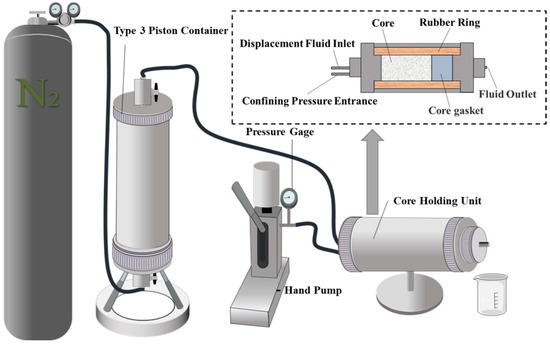 Experimental instruments: rotary agitator (Jincheng Guosheng Experimental Instrument Factory, Jiangsu, China); DV-II+ pro viscometer (Ametek LTD, California, USA); thermostatic water bath (Tianjin Saidelis Experimental Analysis Instrument Factory, Tianjin, China); gel strength tester (Lin’an Fengyuan Electronics Co., Ltd., Zhejiang, China); pressure reducing valve (Qingdao Huaqing Automation Instrument Co., Ltd., Shandong, China); pressure gauge (Xi’an First Automation Instrument Factory, Shaanxi, China); piston container (Nantong Yichuang Experimental Instrument Co., Ltd., Jiangsu, China); core gripper (Nantong Yichuang Experimental Instrument Co., Ltd., Jiangsu, China); confining pressure pump (Nantong Yichuang Experimental Instrument Co., Ltd., Jiangsu, China).
