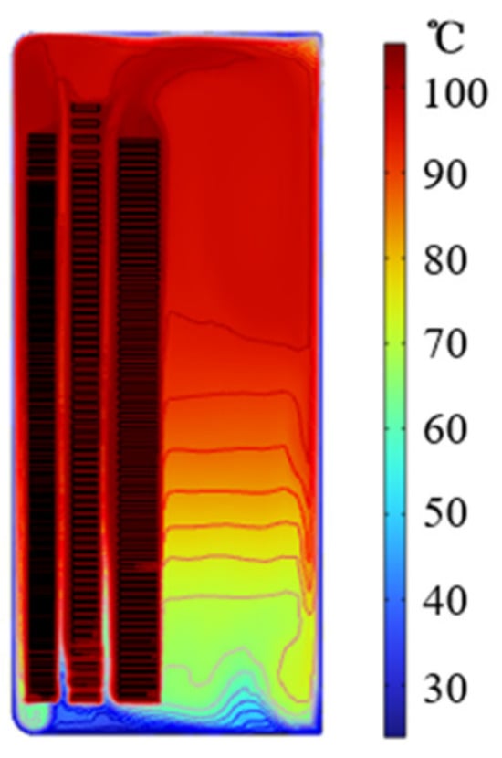 - The ambient temperature is assumed to be 293 K. The two-dimensional calculation results of the transformer temperature field are shown in Figure 8.