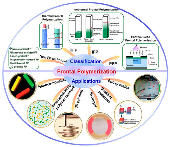 Some types and applications of frontal polymerization are reported in Figure 4.