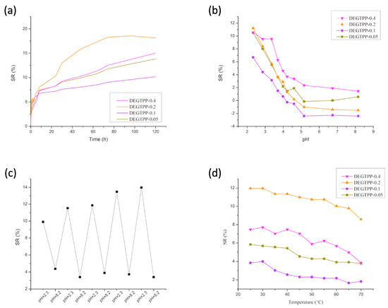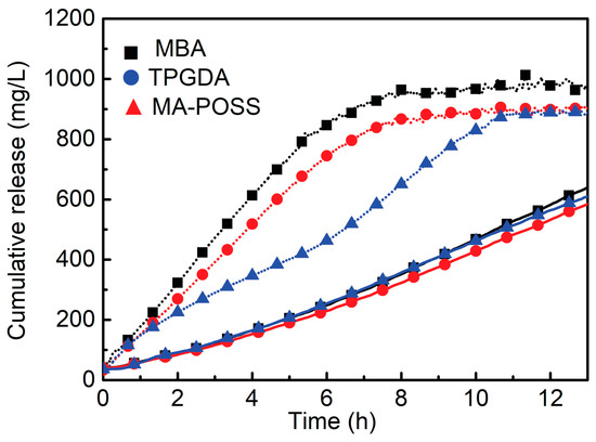 For example, poly(N-isopropylacrylamide) exhibits a lower critical solution temperature (LCST) in water at about 30–32 °C [39]. This characteristic, which determines a drastic decrease in hydrophilicity, could be a problem, e.g., in the presence of third components. Indeed, the fact that this material is swollen at room temperature (and thus below the LCST) while being shrunken at the face temperature could affect the desired characteristics of the final copolymer or composite material.