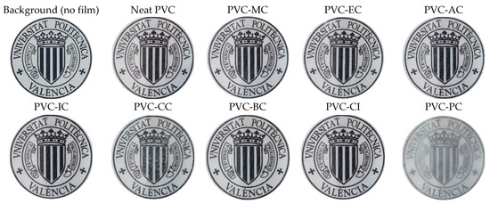 Optical images showing the transparency of films of the neat PVC and plasticized PVC films with the different cinnamic acid-based esters.