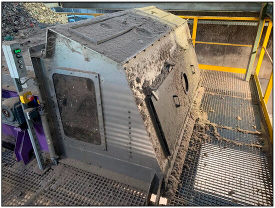 For sampling, the flap at the side of the second centrifugal separator was opened, and the samples were taken during the fall of the conveyor belt. Since the samples must be representative to indicate the material stream, the sampling was carried out with a bucket moving slowly from left to right at the fall point of the conveyor belt. This procedure was performed five times over several days so that the five samples represented the variability of the RDF processing plants’ waste streams after the second centrifugal separator.