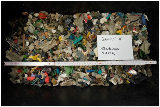 Sample 1 from 17 August 2020 was used as the reference fraction for creating an NIR sorting model of the five samples taken. Sample 1 was chosen because it has a higher mass than the other four samples and thus represents a larger range of particles for the sorting model creation. Sample 2 is presented in Figure 5 as an example of how the sorted samples look.