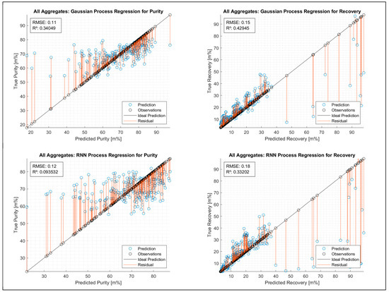 GPR and RNN process regressions for purity and recovery for all aggregates (SBS setups).