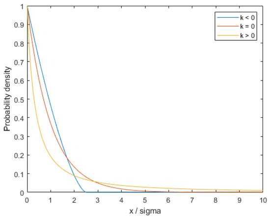 As shown in Figure 5, the Pareto distribution, also known as the Zipf distribution, is a continuous probability distribution in probability theory and statistics. It is usually used to describe some random phenomena with a long-tail nature, such as wealth distribution, city population distribution, and number of web links. The probability density function of this distribution is relatively simple in form but has a heavy-tailed nature, which means that it decays very slowly in the tail. It is parameterized using the shape parameter k and the scale parameter sigma. k is also known as the “tail index” parameter and can be positive, zero, or negative.
