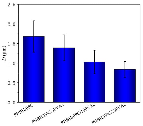 The average size of dispersed phase (D) of PHBH/PPC and PHBH/PPC/PVAc blends.