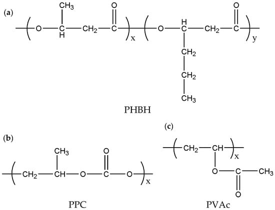 Chemical structures of (a) PHBH, (b) PPC and (c) PVAc.