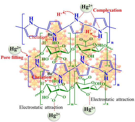 - Mohanty, N.; Patra, B.N. Polypyrrole-sodium alginate nanocomposites for enhanced removal of toxic organic and metal pollutants from wastewater. Mater. Today Commun. 2023, 34, 105325. [Google Scholar] [CrossRef]