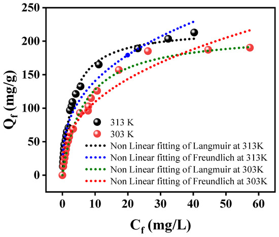 | Isotherm | Parameters | 303 K | 313 K |