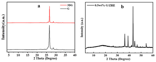 XRD patterns of (a) graphene sheets and 3DG, (b) 0.5 wt% G/ZRE.