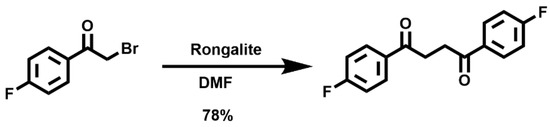 The synthesis of BFB was according to the literature (Scheme 1) [29]. A mixture of BFEO (26 g, 116 mol), SHMD (20 g, 123 mmol), and DMF (160 mL) at room temperature was stirred for 3 h. Deionized water (260 mL) was added, and the white solid was separated. The mixture was filtered through a glass sintered funnel and washed with deionized water (4 × 60 mL). The solid was dissolved in DCM, the solvent was removed again using a rotary evaporator, and the residue was purified by column chromatography on silica gel using DCM/PE as eluent (from 1:1 to 3:1 v/v) to obtain 24.8 g BFB product (white solid, yield: 78%). The characterization of BFB was shown in the Supporting information (Figures S1 and S2). 1H NMR (700 MHz, chloroform-d): δ 8.07 (dd, J = 8.4, 5.6 Hz, 4H), 7.15 (t, J = 8.4 Hz, 4H), δ 3.43 (s, 4H). The molecular weight for C16H12F2O2 [M]+: 274.0884, found: 274.0880 by high-resolution gas chromatography–mass spectroscopy.