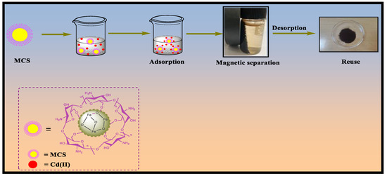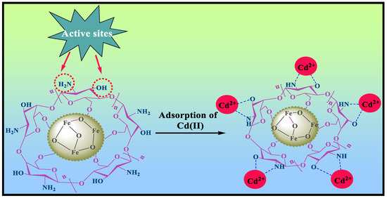- Zhang, H.; Dang, Q.; Liu, C.; Yu, D.; Wang, Y.; Pu, X.; Liu, Y.; Liang, Y.; Cha, D. Fabrication of Methyl Acrylate and Tetraethylenepentamine Grafted Magnetic Chitosan Microparticles for Capture of Cd (II) from Aqueous Solutions. J. Hazard. Mater. 2019, 366, 346–357. [Google Scholar] [CrossRef]