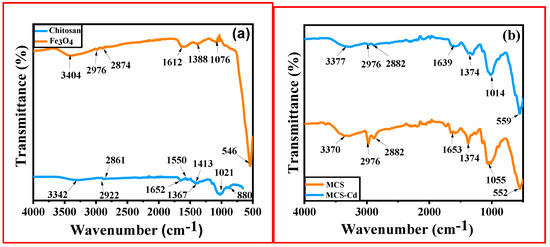 - Homayonfard, A.; Miralinaghi, M.; Shirazi, R.H.S.M.; Moniri, E. Efficient Removal of Cadmium (II) Ions from Aqueous Solution by CoFe2O4/Chitosan and NiFe2O4/Chitosan Composites as Adsorbents. Water Sci. Technol. 2018, 78, 2297–2307. [Google Scholar] [CrossRef] [PubMed]