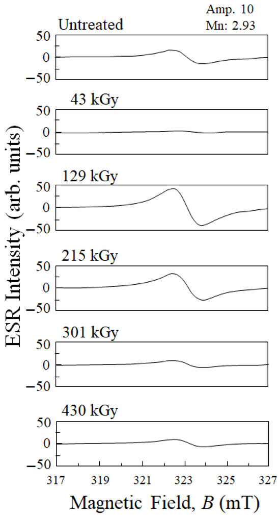 ESR signals of CF when untreated and treated with each HLEBI dose.
