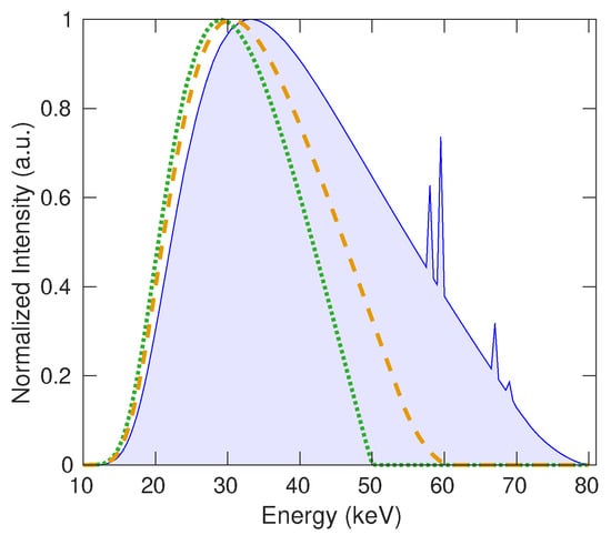 - Cranley, K. Catalogue of Diagnostic X-ray Spectra and Other Data; The Institute of Physics and Engineering in Medicine Report (IPEN): York, UK, 1997. [Google Scholar]