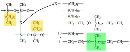 The schematic structure of cross-linked polydecylmethylsiloxanes.