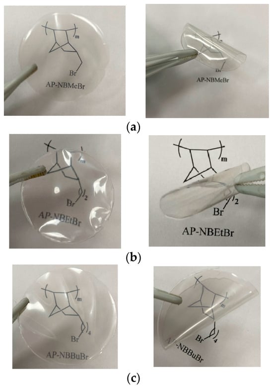 As a result of the high molecular weights and amorphous nature of the synthesized vinyl-addition polymers from 5-bromoalkylnorbornenes, we were able to obtain robust thin films from these homopolymers. This paves the way for new anion exchange membranes using such homopolymers as scaffolds.