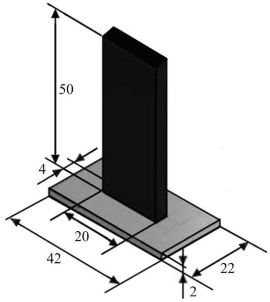 Design of the T-joint specimen. All dimensions are in millimeters.