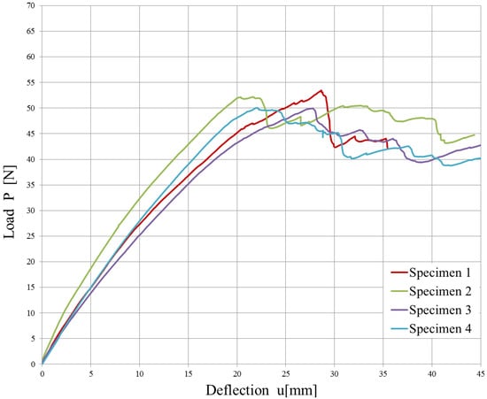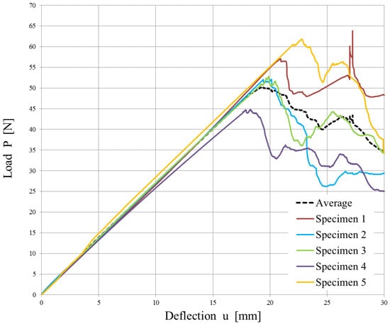 Experimental load vs. displacement plot of the T-joint specimens.