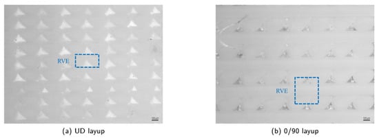 Microstructural images of different layups including actual RVEs []. Reproduced with permission from Elsevier, 2020.