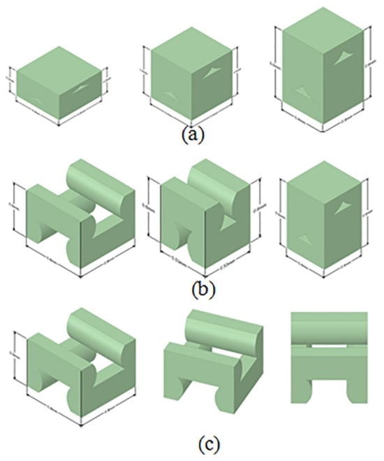 Idealized RVEs for (a) negative air gap and different layer heights, (b) constant layer height and different air gap values, and (c) positive air gap and different raster orientations []. Reproduced with permission from Elsevier, 2020.