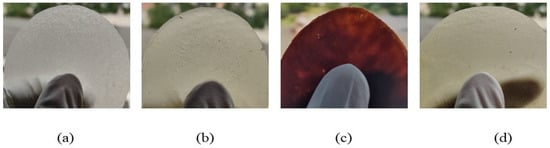 The appearance of (a) neat PEF, (b) PEF–bioglass, (c) PEF–ZnO, and (d) PEF–ZrO2 composite films.