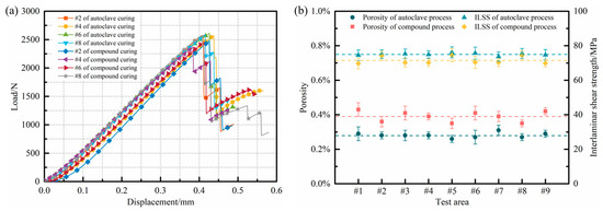 (a) Typical load–displacement curves; (b) comparison of internal porosity and ILSS in melon petals formed via different processes.