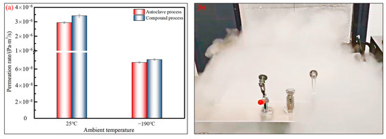 Permeation tests of composite melon petals: (a) test results; (b) cryogenic testing process.