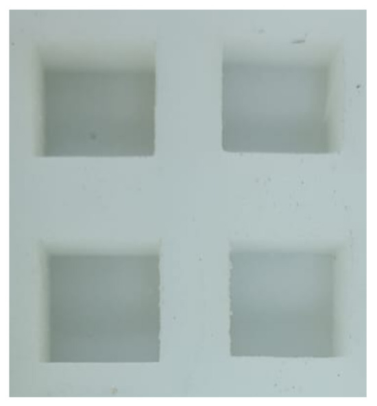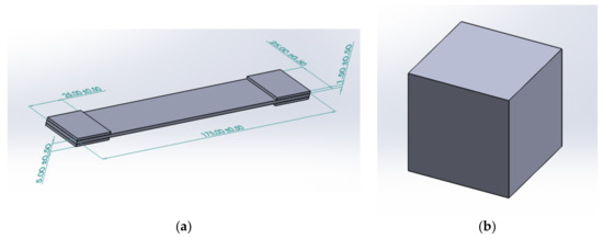 In this investigation, silicone materials were sourced from Castin’ Craft, a company offering materials with a working time of 45 min to one hour and a curing period of 24 h. To provide a visual guide, Figure 2 depicts a flow diagram of the mold-making process. To initiate the creation of a silicone mold tool, the initial step involves designing the mold cast using computer-aided design (CAD) software (SOLIDWORKS Premium 2020 SP0.0). This design incorporates precise measurements, as illustrated in Figure 3. Part (a) corresponds to the ASTM D3039 model for the tensile test, while part (b) represents the ASTM D3410 model for the compression test, each featuring a length of 25 mm.